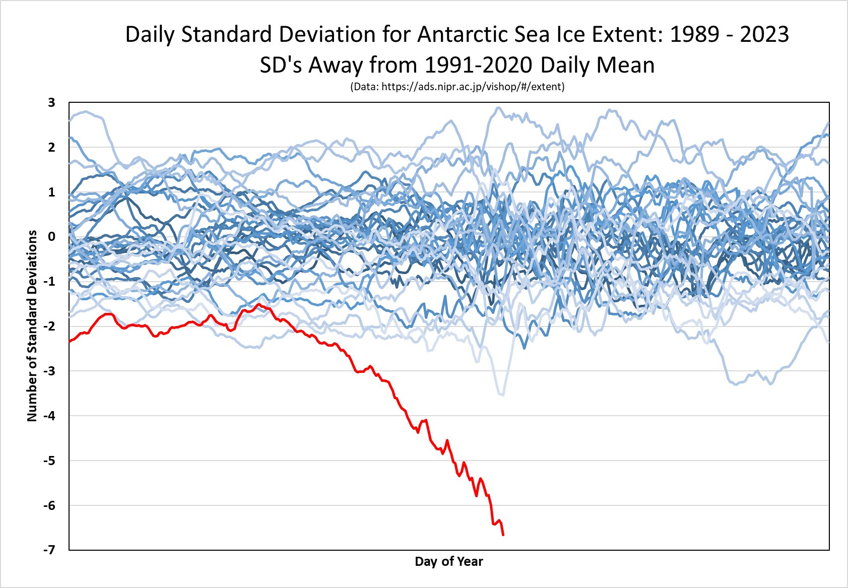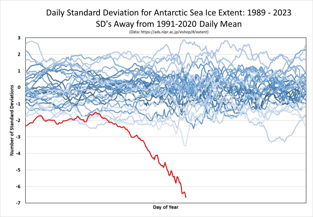 Antarctic Sea Ice Extent 1991-2023 Share this: Click to share on X (Opens in new window) X Click to share on Facebook (Opens in new window) Facebook Like Loading...